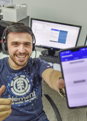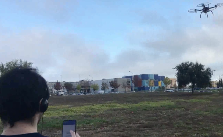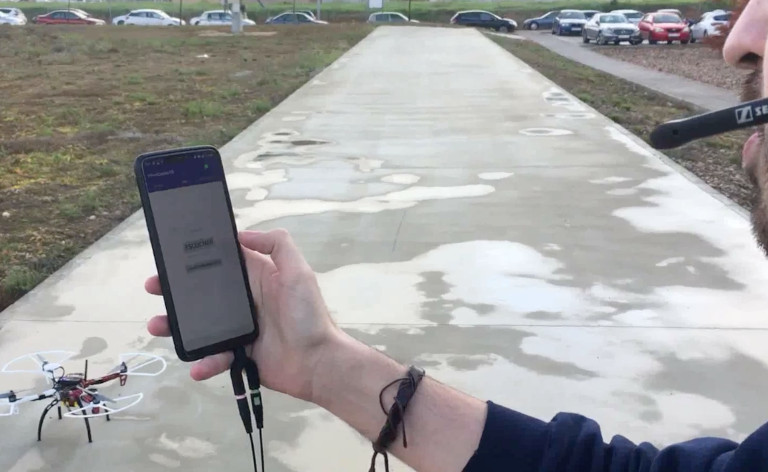 Para poder hablar con el dron a largas distancias evitando el ruido de los motores, se ha desarrollado una aplicación en un teléfono móvil que es capaz de escuchar la voz del usuario e identificar las órdenes dirigidas al dron. Para ello, se han integrado técnicas de inteligencia artificial que reconocen las órdenes independientemente de la personas que las emite.