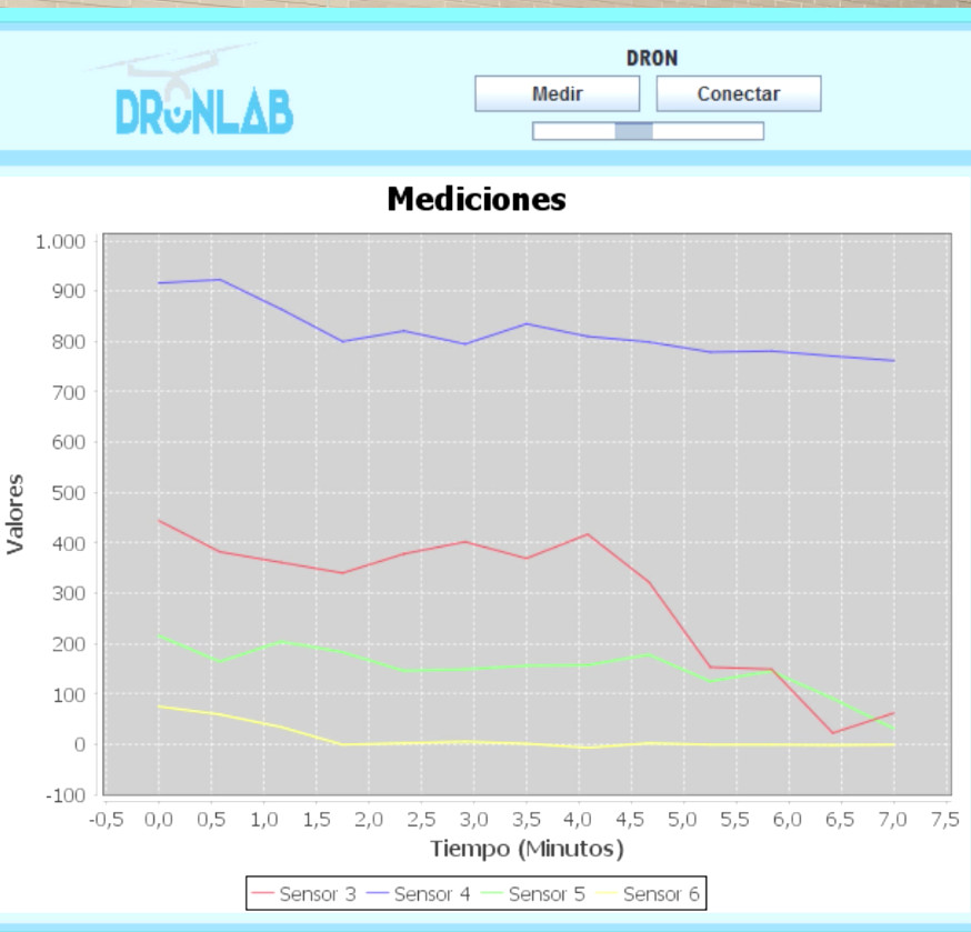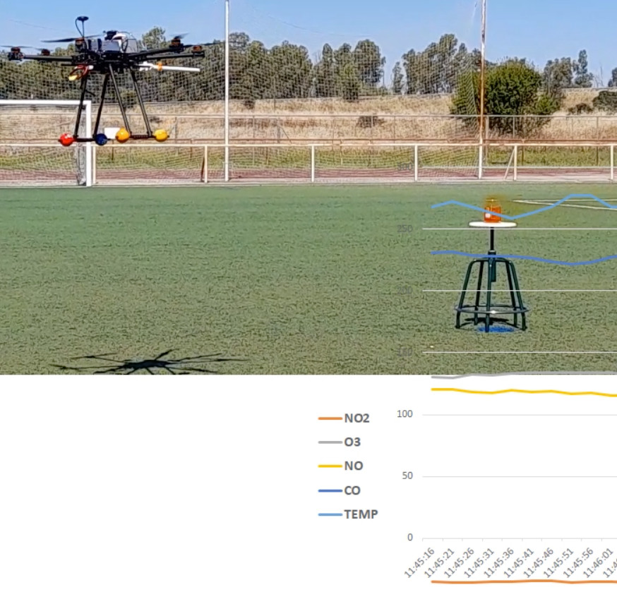 La transmisión de datos se realiza de forma inalámbrica en tiempo real mediante ZigBee. Además, los datos se almacenan localmente en caso de que no sea posible la comunicación inalámbrica. Finalmente se ha realizado una prueba de vuelo para verificar el correcto funcionamiento del sistema. Se consigue una señal estable independientemente del vuelo del dron. Además, también es posible detectar una fuente de NO2.